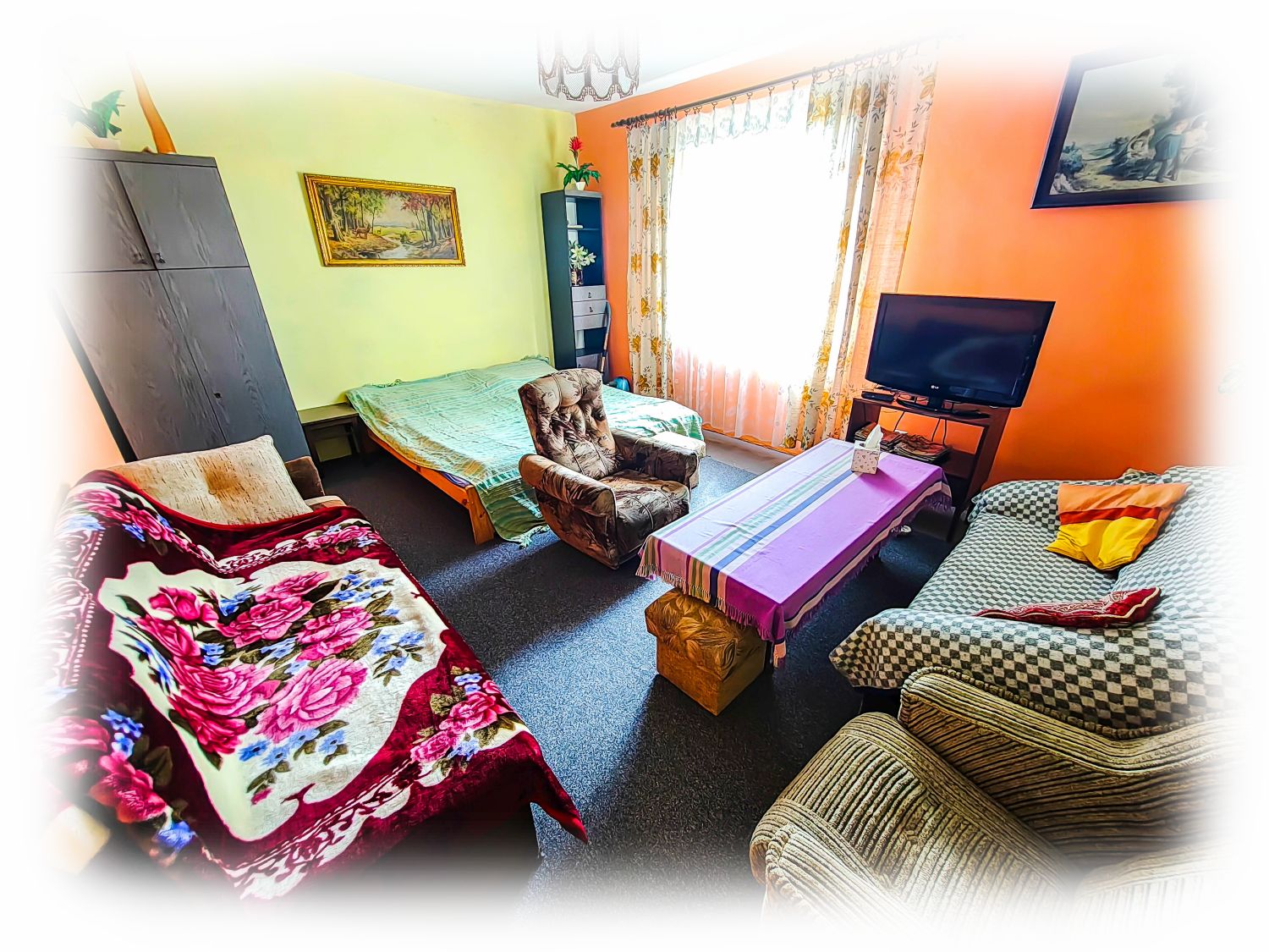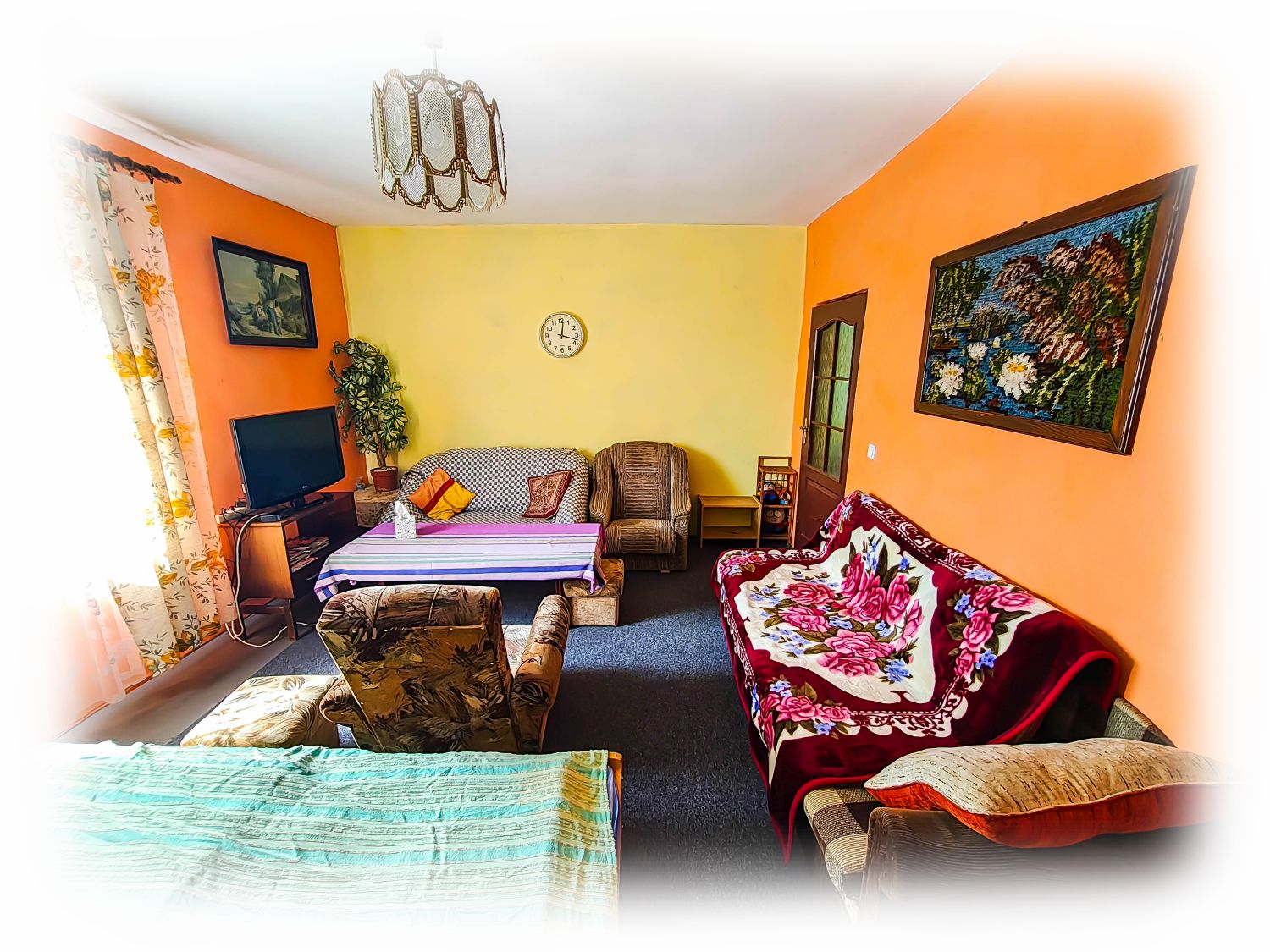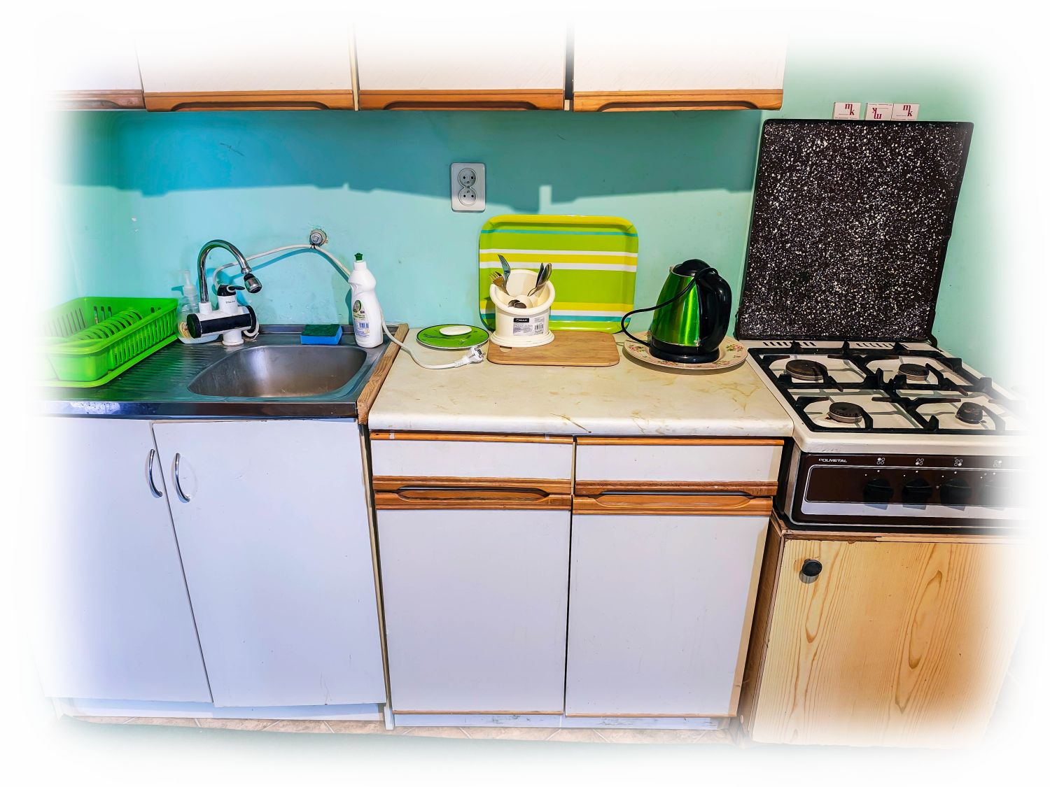 ● w pełni wyposażona kuchnia: kuchenka gazowa, czajnik elektryczny, naczynia, sztućce; radio, TV;